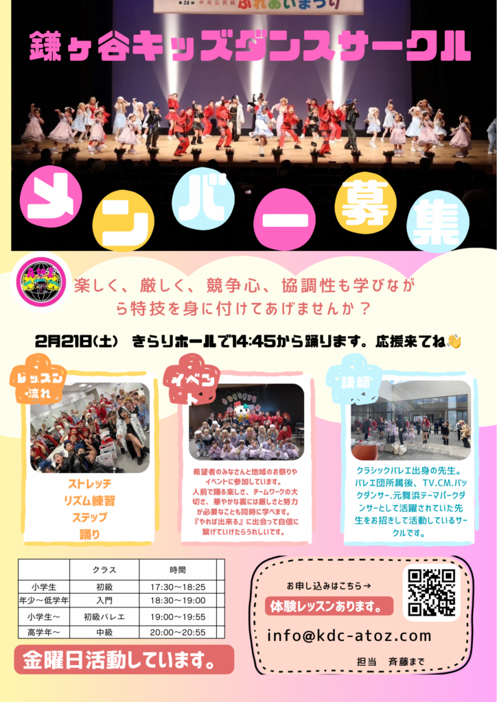 3歳から高校生までいまーす。入門ダンス、テーマパーククラス、バレエクラス、KPOP色々なジャンルやってます。ぜひ体験にいらしてください。